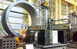 主要用于大型筒形內(nèi)壁堆焊的自動焊接設(shè)備。通過焊接操作機(jī)橫臂的伸縮與滾輪架(選購)等周邊設(shè)備配合,實現(xiàn)工件的環(huán)縫內(nèi)壁堆焊焊接;設(shè)備配置兩套帶極堆焊系統(tǒng),焊接效率倍增。